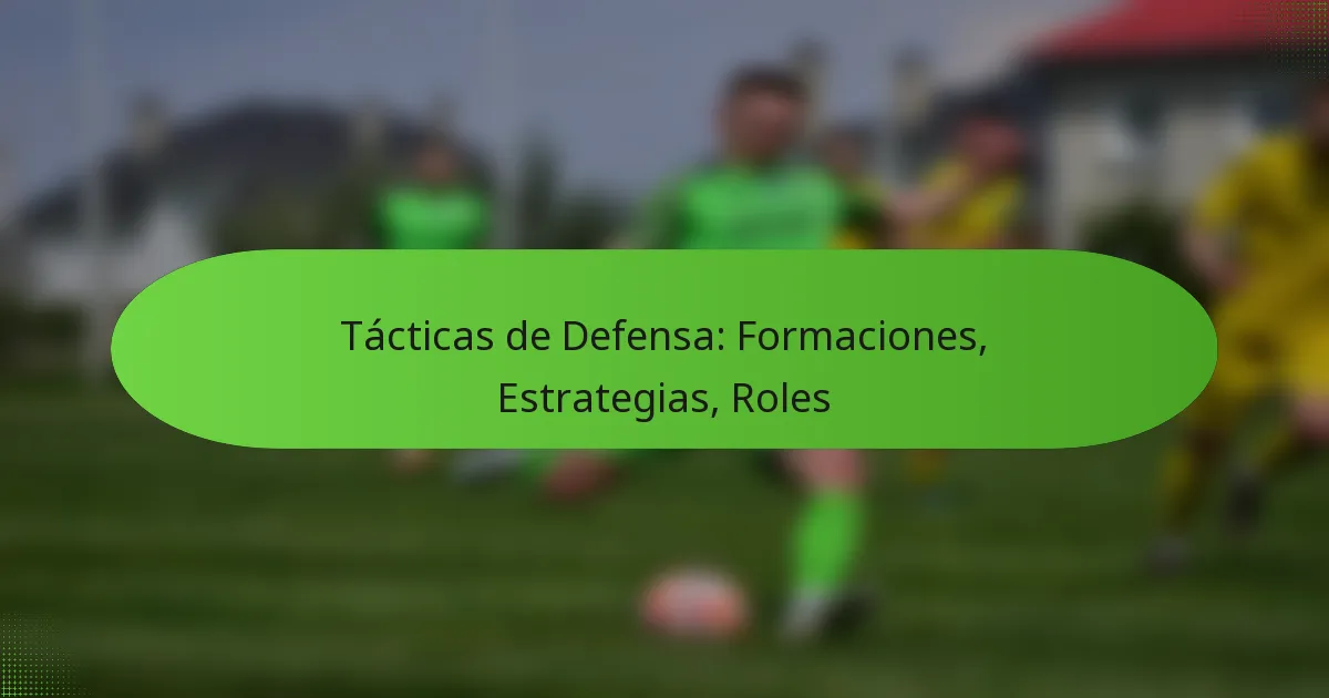 Las tácticas defensivas abarcan diversas formaciones, estrategias y roles destinados a minimizar las oportunidades de anotación para los oponentes. Formaciones clave como 4-4-2, 3-5-2 y 5-3-2 ofrecen ventajas y desafíos únicos, lo que requiere que los equipos adapten su enfoque según el contexto del juego. Las estrategias defensivas efectivas implican ajustes en tiempo real para contrarrestar las fortalezas del equipo contrario, mientras que los roles de los jugadores, claramente definidos, aseguran una defensa cohesiva y estructurada.